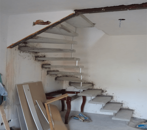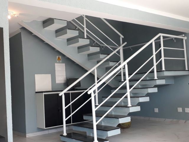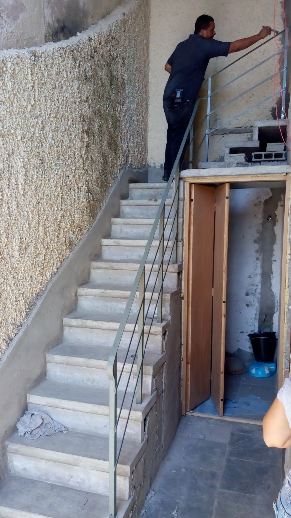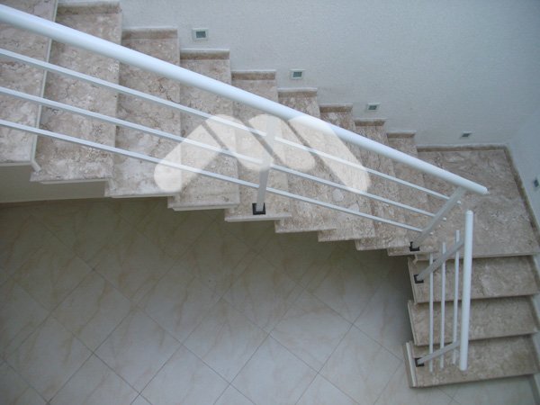 Para Ambientes internos, com corrimão de ferro.