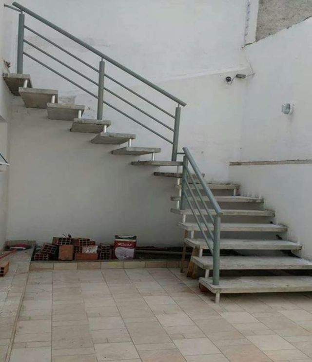 Para Ambientes externos, com corrimão de ferro.