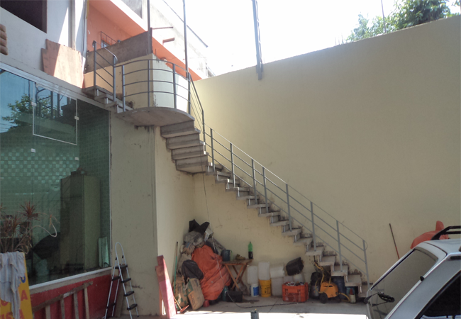 Facilitando o acesso entre ambientes distintos, com corrimão de ferro.